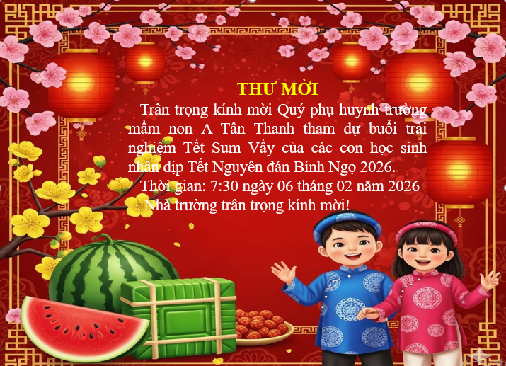 Trường mầm non A Tân Thanh thông báo Lịch nghỉ Tết Nguyên đán Bính Ngọ năm 2026