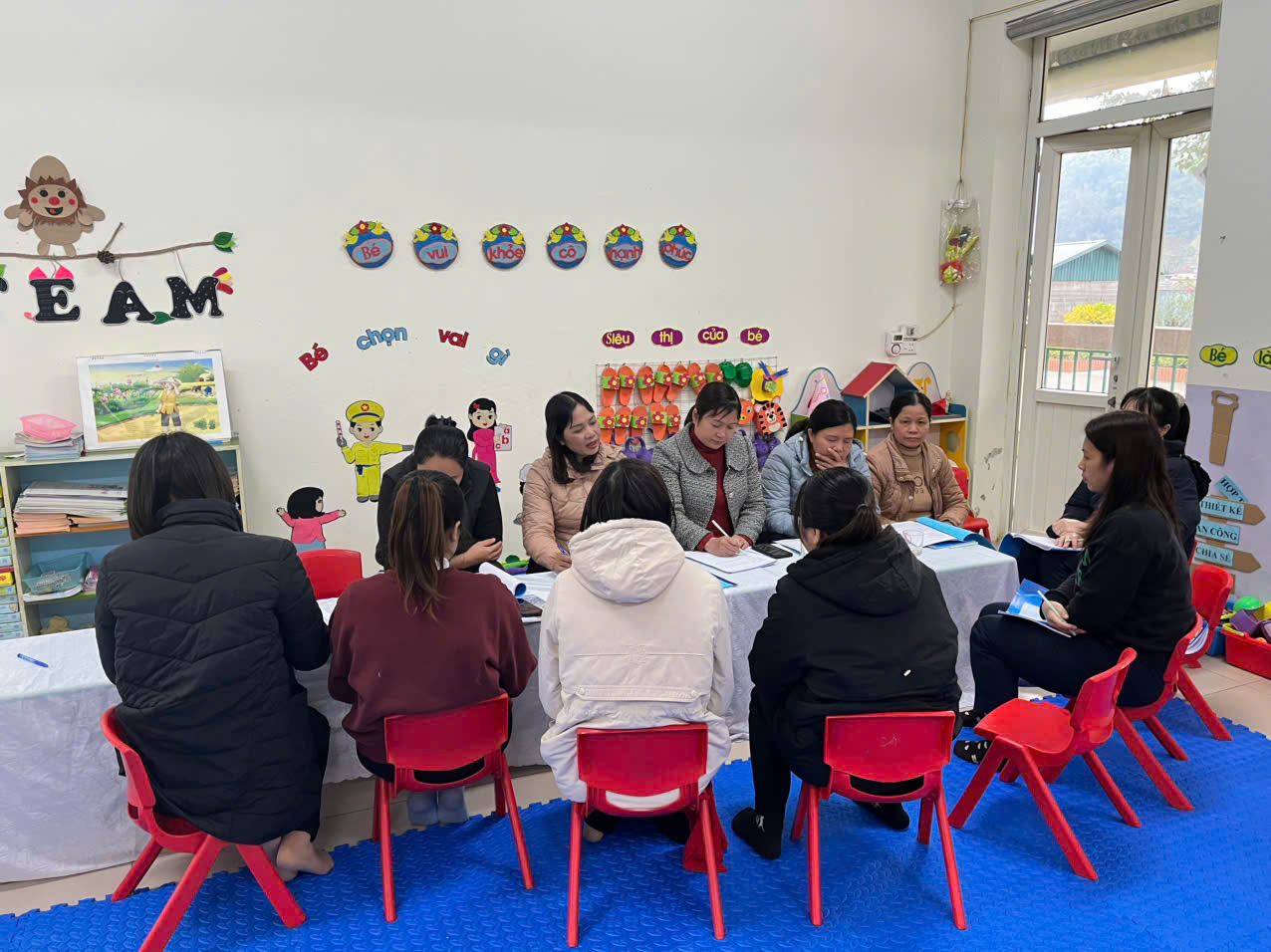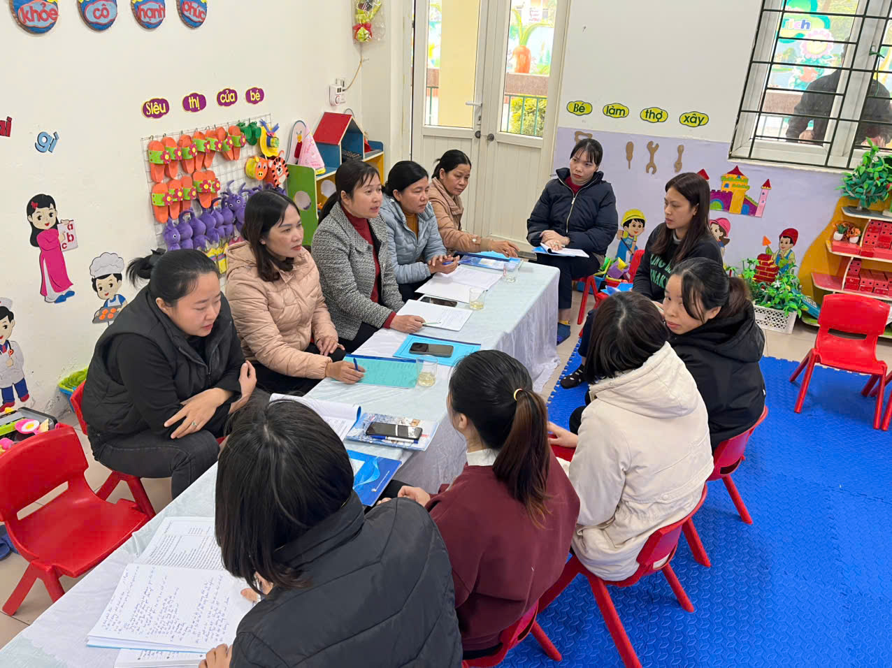 Buổi sinh hoạt chuyên môn được tổ chức nghiêm túc, đúng kế hoạch, tập trung vào các nội dung trọng tâm như: dự hoạt động học Khám phá khoa học do giáo viên Dương Huyền Dịu thực hiện tại lớp Mẫu giáo B5, quan sát diễn biến quá trình học tập của trẻ.